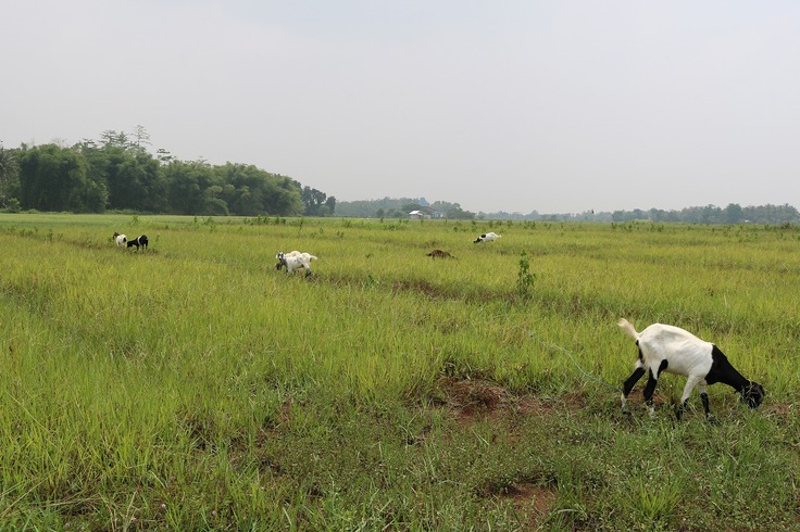 日中はのんびり草を食べるヤギ