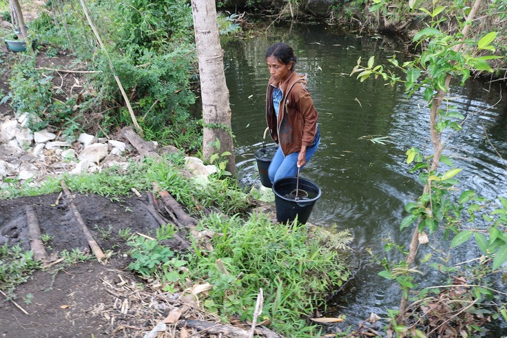 この川にもLIFEが開発している水車ポンプを置いて、水汲みの負担を減らすことを考えています。