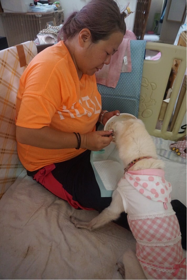 私は猫ボラをしていて、猫班として長崎ライフオブアニマルさんの活動を近くで見てきました。結婚を機に、主人が犬と生活したいと言いました。我が家には猫が5匹いて、うち1匹は下半身不随です。そこで代表の木村さんに相談し、1匹の犬と出逢いました。