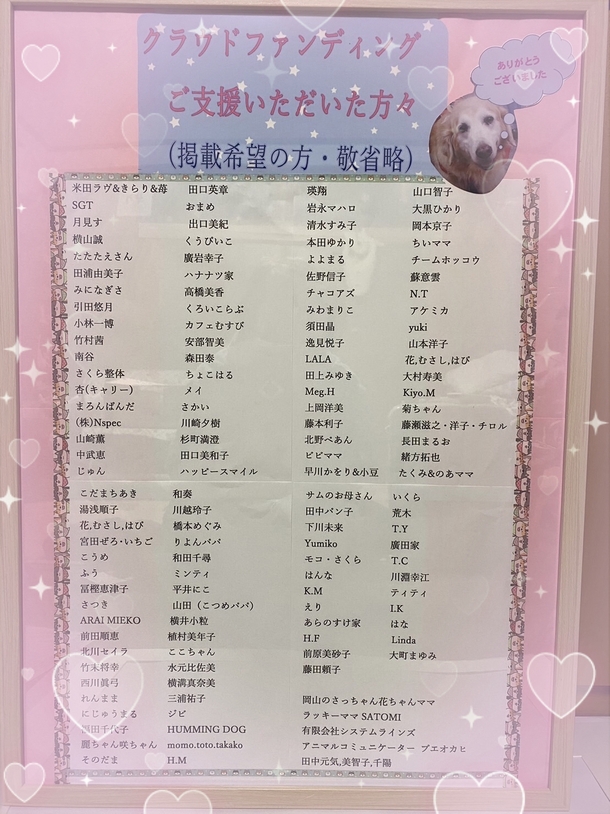 ご支援頂いた方々へのリターンの『ティアハイムセカンドへのお名前掲示』も完成し、掲示させて頂いています🍀