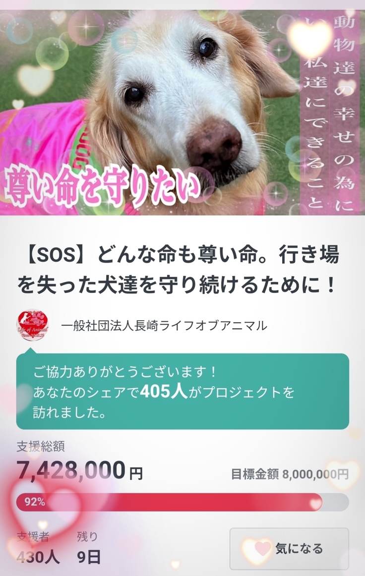 みなさんからの熱いご支援のおかげで目標達成まで92%になりました😭