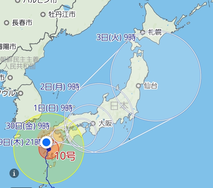 非常に強い台風10号が接近しています😭