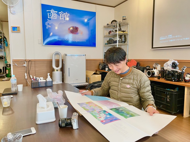 実際に印刷機で刷られたものを見せていただき、自分の写真の色と比べて、違うものには修正をお願いします。