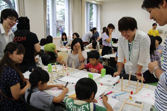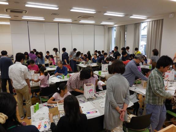 両日で大人も子どもも合わせて142名が参加し、93個の行灯が完成しました。この行灯は7月18日に真間山弘法寺の石段に並べてライトアップを実行します。