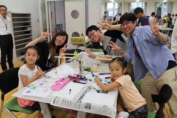 手作りの行灯を組み立てる工程では、本学の学生と子ども達が協力しながら作業に取り組み、また絵を描く工程では子ども達の発想力に、学生達も驚いている様子でした。あいにくの雨模様でしたが、教室内には笑い声と笑顔がいっぱい溢れていました。