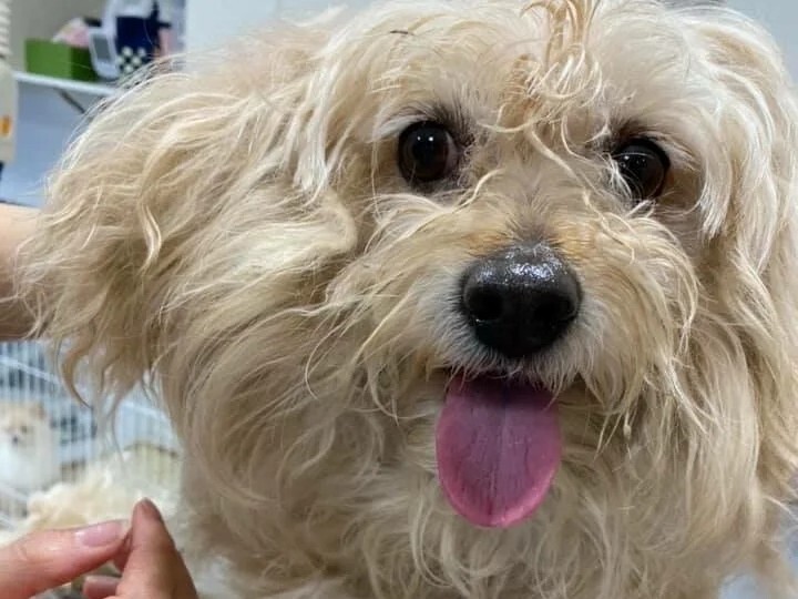 保護したときのコロンは、もういつからトリミングしていないかわからないくらいの糞尿まみれの鎧を着ていました。そして、威嚇し、クレートから出すのが困難でした。
