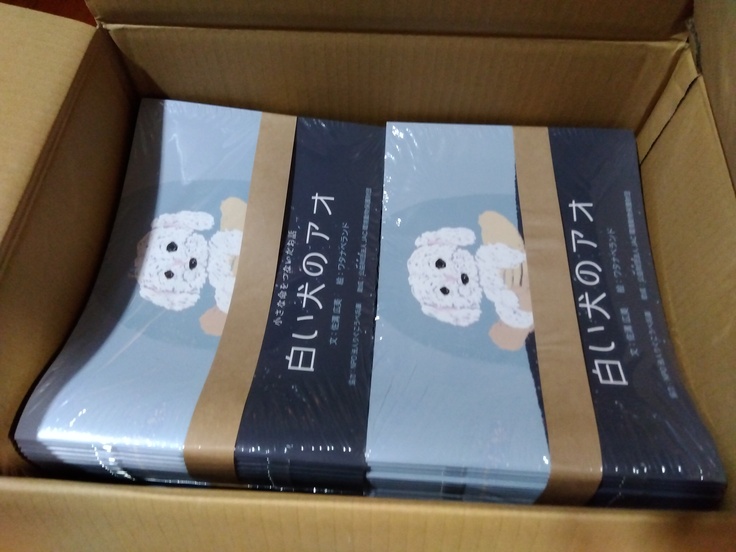 私の手元に届いている、オリジナル絵本「白い犬のアオ」も発送準備に入ります。