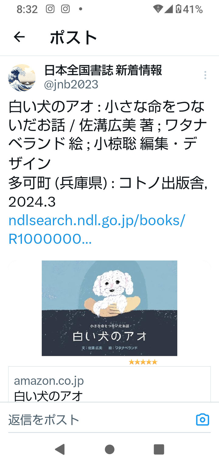 この度、オリジナル絵本「白い犬のアオ」が国立国会図書館に納められました!