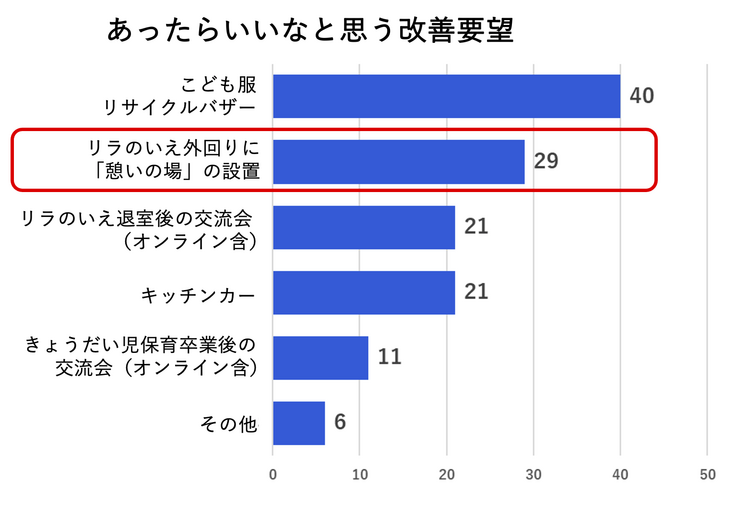 きょうだい児保育の遊び場としてはもちろん、滞在施設の利用者さんが憩える場所にもなればと。コロナ禍では面会時間の制限がありましたので、ご家族はリラのいえで過ごす時間が増えていました。