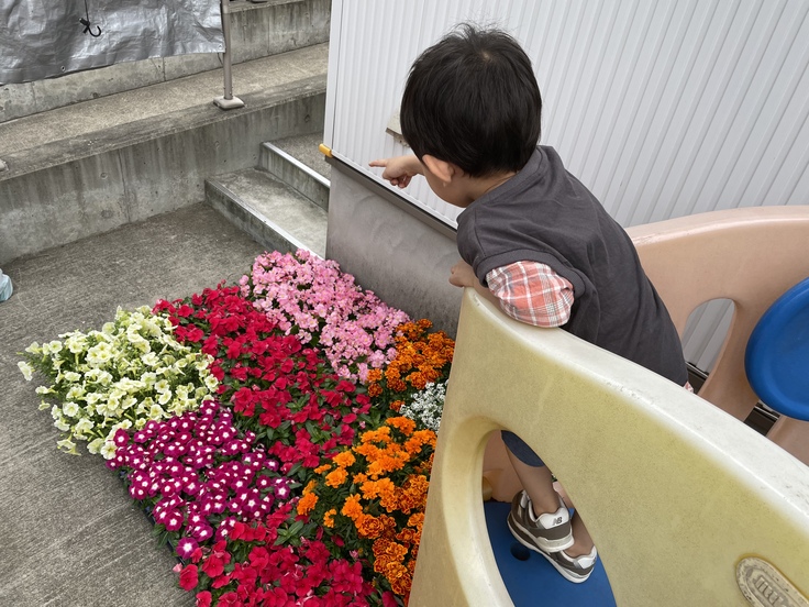 きょうだい児保育のお子さんと、きれいだねぇと眺めています。