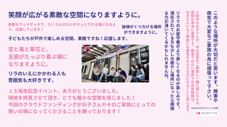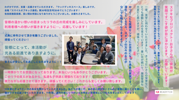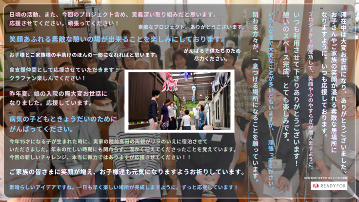激励コメントの数々、本当にありがとうございます。 多くの方々の応援とともに、今回のプロジェクトを大成功させたいと思っています。
