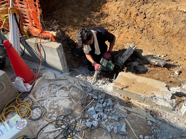 入口はスロープになるので、ブロックを撤去します。