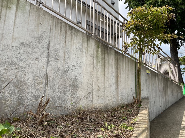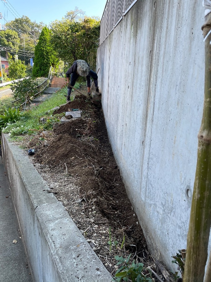 ばっさり切りました。根っこは残っているので、完成後は緑が戻ってくる予定です。