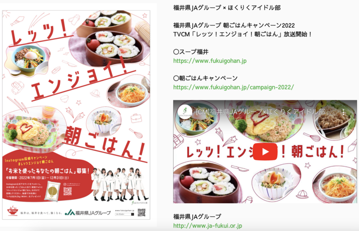 そのための情報発信の方法は様々ありますが、今まで他では誰もやってない取り組みとして、地元の「キッズアイドル」が福井県の魅力を発信することで幅広い年齢層の方に、越前市や福井県に関心や親しみを持って頂けるのではないかと考えました。