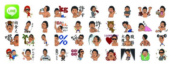 ベストボディ界イケメンナンバー1の岡田実成くん。パーソナルトレーナーなので、筋トレを中心としたLINEスタンプとなっています。