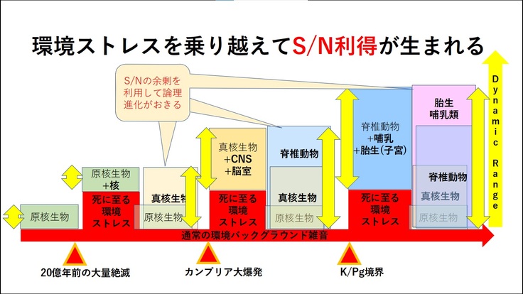 細胞膜、核膜、脳室、子宮という低雑音環境が突然変異で生まれた。