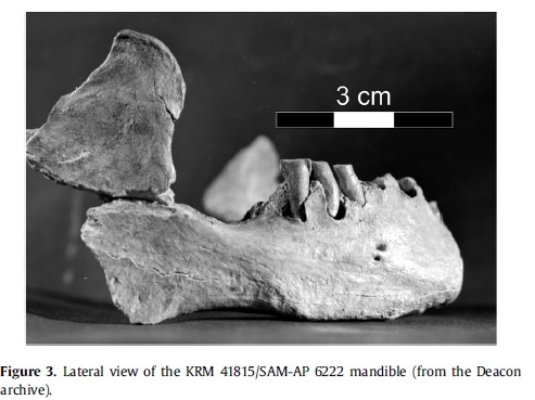 カラハリ砂漠で、猛獣が食べ残した骨を主食としたために、牙のない平坦な歯列と臼のような奥歯をもった。