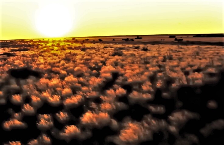 はてしなく荒野ひろがるカラハリで遠くを見んとヒト立ち上がる