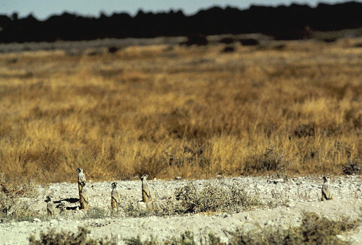 カラハリの過酷な環境のために、アウストラロピテクスは直立二足歩行、拇指対抗の指、平らな歯列になった可能性があります。カラハリは非常に平らなので、より高い視点を持つことは、捕食者の攻撃を早期に警告することによって生存の可能性を高めることができます。狩猟採集民が直立しているとき、彼らの手は自由に石や槍を投げることができました。道具を使って耕したり戦ったりするとき、親指は他の4本に向かい合い、握力を強化しました。