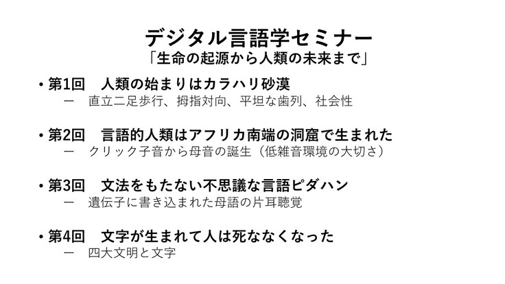 人類の未来の目標を明らかにする、デジタル言語学フルコースのメニュー