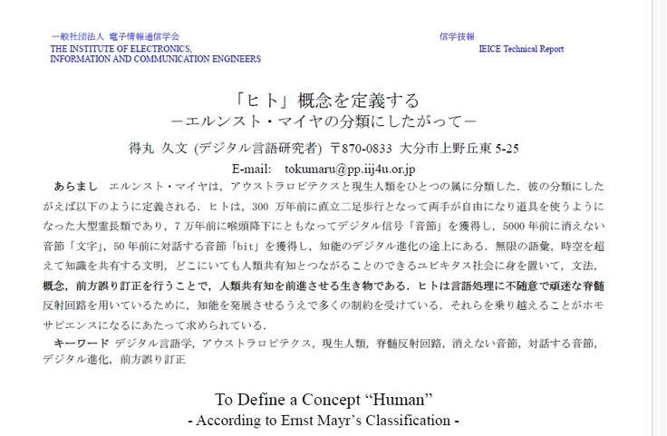 「ヒト」概念を定義する、を電子情報通信学会非線形問題研究会で発表します