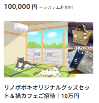 リノポポキオリジナルグッズセット&猫カフェご招待|10万円