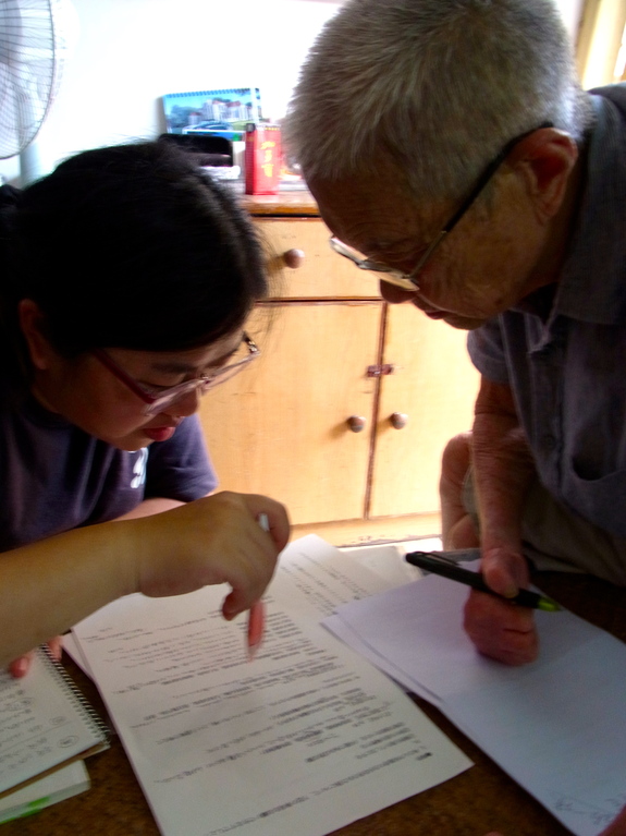 本の中で林さんが訴えたいことや、伝えたい思い、本の中にある林さんの漢詩の意味の確認などをしていくうちに、翻訳の原稿は少しずつ改善していっております。サブタイトルや本の「まえがき」も書き加えていただきました。林さんには精力的に打ち合わせをしていただいたおかげで、READYFORでのお礼に予定するビデオレターも緑の木陰で撮ることができました。
