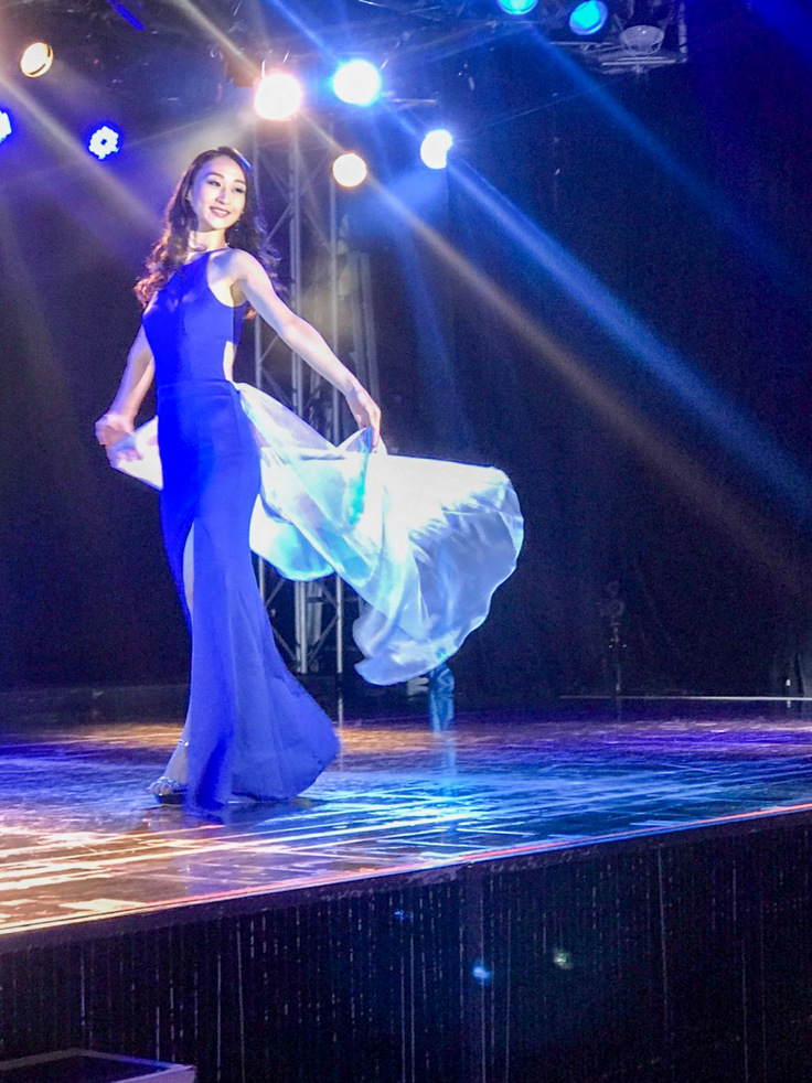 →コンテストではロングドレスを着用し、脚を長く綺麗に見せるために約15cm前後のヒールを履いて挑みます。
