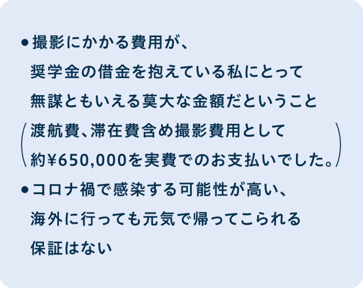 と感じ、渡航を決断し無事に撮影を終えてきました。