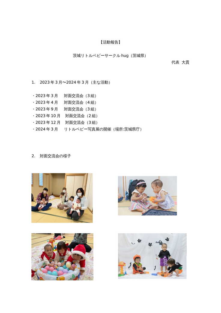 茨城リトルベビーサークルhug(茨城県)より活動報告が届きました。