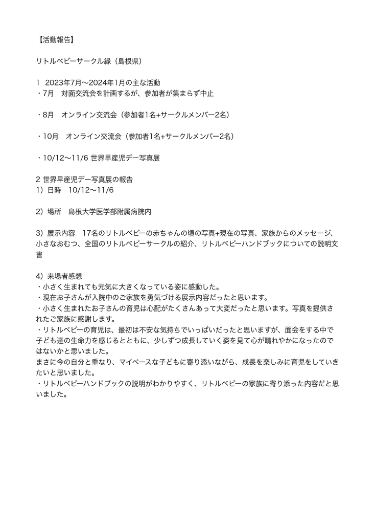 リトルベビーサークル縁(島根県)より活動報告が届きました。