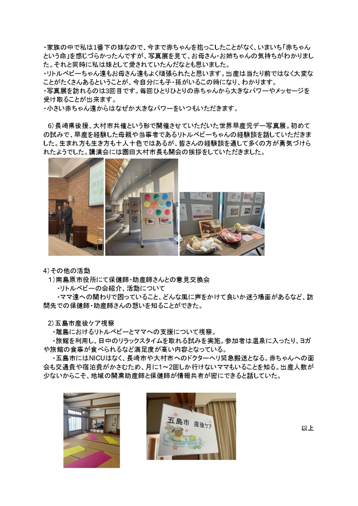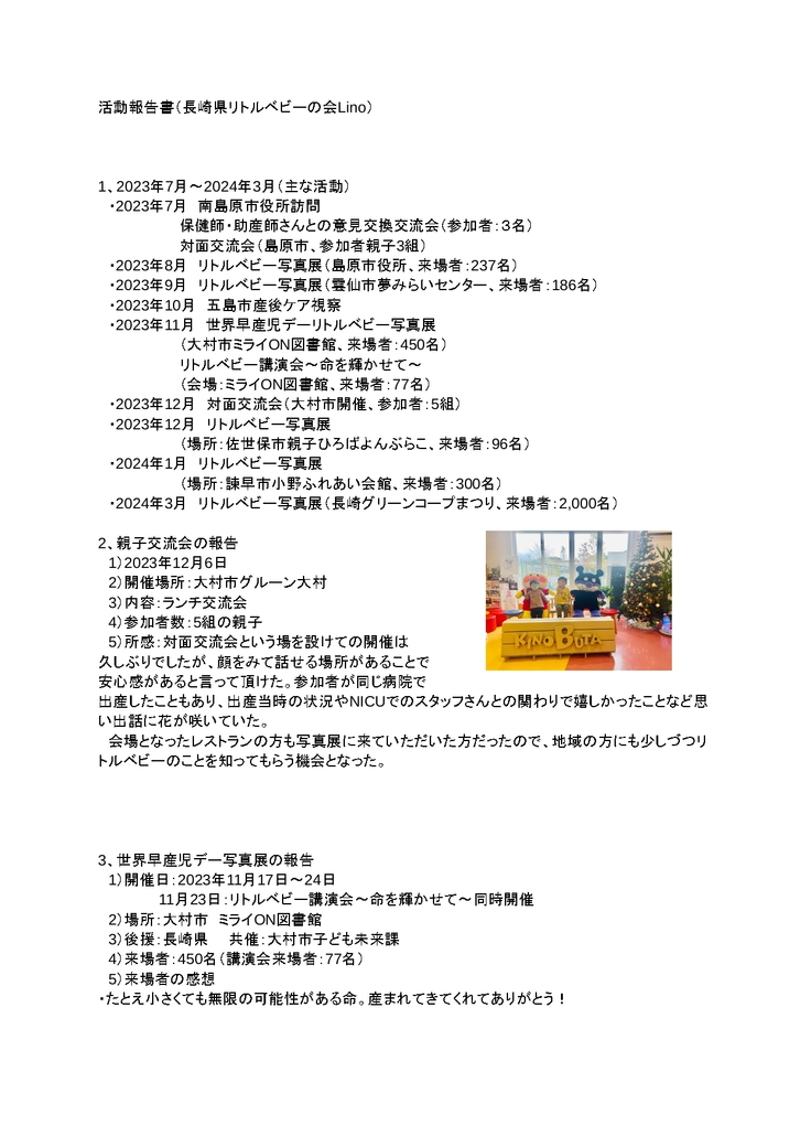 長崎県リトルベビーの会Lino(長崎県)より活動報告が届きました。