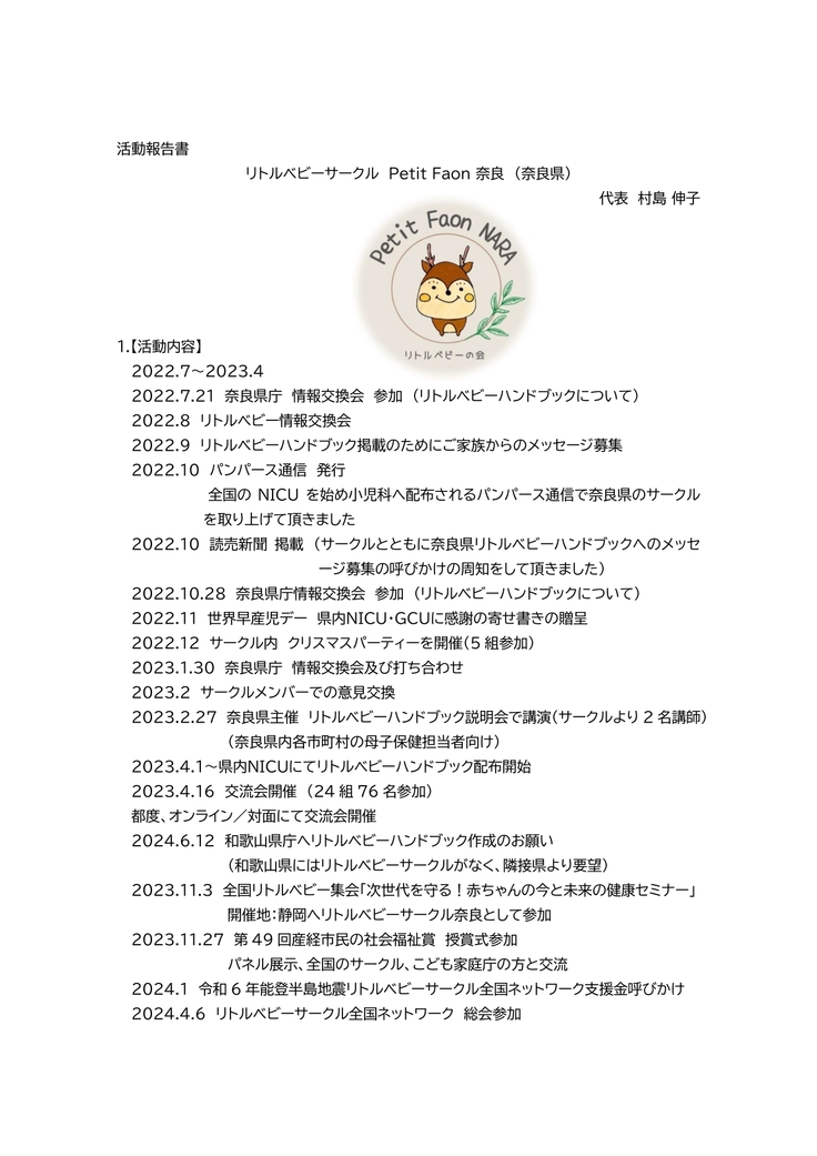 リトルベビーサークルPetit Faon奈良(奈良県)から活動報告が届きました。