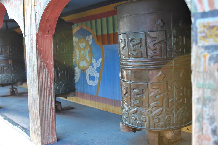 「ネパール 仏教寺院」には、時計回りに1回まわすと1回お経を読んだことになる「マニ輪」があります。