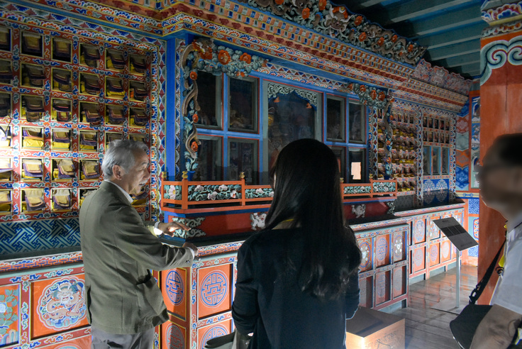 1985年当時、「ネパール 仏教寺院」復元を手掛けた研究員(現館長:稲村哲也)により、寺院の細部にわたる解説を行いました。