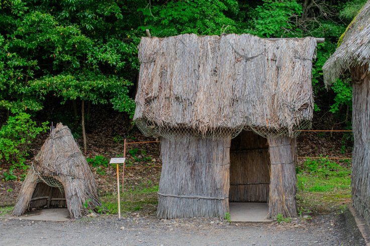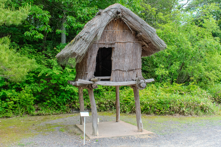 アイヌの家や集落を再現した展示は他の施設にも見られますが、当館では母屋だけでなく、分家や高倉、便所、クマの檻なども含めて「アイヌコタン(集落)」を構成しており、その全体像を屋外に再現している点が特徴です。そして、ここは日本の中では最も南に位置するアイヌコタン展示でもあります。