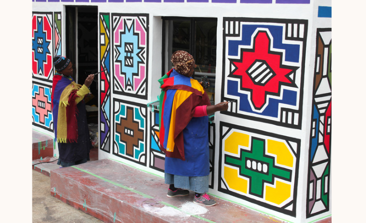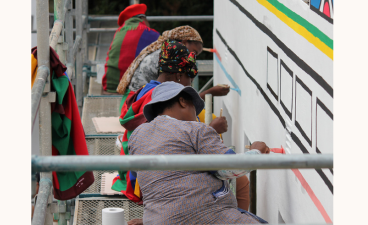 2016年に行った「南アフリカ ンデベレの家」の壁画修繕では、現地の伝統的な女性絵師4名をお招きし、実際に壁画の再描画をお願いしました。このとき、参加者のうち1名は若手絵師であり、修復作業そのものが次世代への技術継承の場となるよう配慮しました。伝統的な家屋の壁画を描く機会が少なくなっているンデベレの人々にとっても、こうした取り組みは貴重な機会となり、私たちにとっても大きな意味を持つものとなりました。