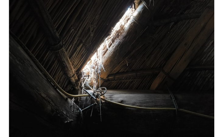 1983年の竣工以降、細やかな修復を重ねながら大切に保存してきましたが、屋根材であるカヤが経年劣化し、雨天時には室内への漏水が発生するようになってしまいました。建物内部には生活用具等の貴重な民族資料も展示されているため、雨水による二次被害が懸念されます。また、強風や豪雨の際には、屋根のみならず壁材としても使用しているカヤが飛散しやすくなっており、観覧者の安全面にも配慮が必要な状況です。