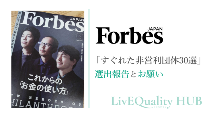 そんな中、昨日発売された「Forbes JAPAN5月号」内で「すぐれた非営利団体30選」にLivEQuality HUBを選出いただきました!(まだ読んでいない方は書店へGO!)