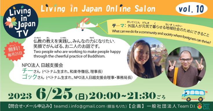 今回のお話会は、同胞ベトナム人を支援する組織を立ち上げたベトナム人のお話をお聞きします。