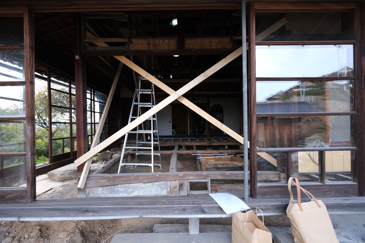 構造的に歪みが出て、建具すらスムーズに動かなかったり、そのために柱梁を弄り、水平垂直を取り直したり、浄化槽もないため、それを新規で作ったり、電気も旧式ゆえそれを直したり、まあまあな大手術を必要としています。