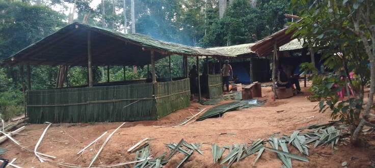 実に立派にポン・カッセのキャンプサイトが、相談した通りのリニューアルを遂げていたではないですか❣️ 台所もサロンスペースも、4人が泊まるテント場もピカピカのヤシの葉で覆われ、緑の香りで安らげる空間になっていました。奥の方には、ここを拠点にバイを回るチームのための泊まり場もあって、「ナオビ、今度はどこに泊まる?」と、馴染みになったモニタリング・アシスタントたちが、自慢げに案内してくれました。
