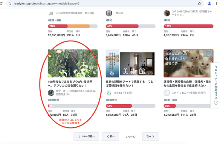 おかげさまで、昨日はまたたくさんのご支援をいただき、一気に10万円近くアップ。そして『注目のプロジェクト』で46位まで押し上げていただきました❣️