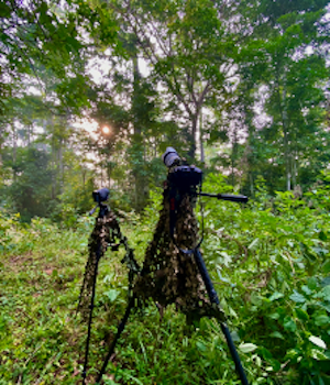 このあとさらに三脚を植物で覆ってカムフラージュ