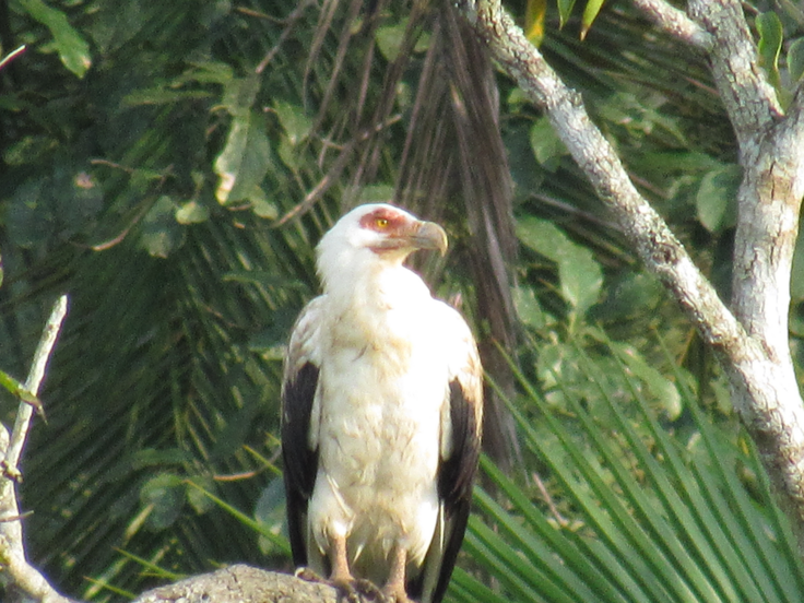 このジャンギのバイは、これだけの数のアオバトやヨウムがほぼ毎朝集まるので、実は多種多様なハンターたちの観察スポットでもあります。鳥の天敵は鳥だろうと思い込んでいたら、地上にはマングースが何匹も出てきて、ハトからは見えない葉陰に潜んで、パッと飛び掛かって仕留めることも。