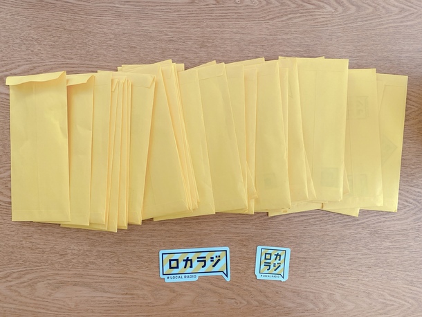 左側のステッカーは、全国のラジオ局に【ロカラジ】のお知らせとともに送りたいと考えています。