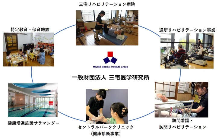 私たちの法人は昭和10年に創立以来、香川県高松市の中心街において患者様の一日も早い社会復帰に向けて最大のサービスを提供することを理念に掲げ、平成16年8月に完成した「三宅リハビリテーション病院」を母体に、健康診断専門の「セントラルパーククリニック」、健康増進施設「サラマンダー」を開設し予防医学から健診事業、治療を担うトータルケアで地域の皆様へ貢献すべくサービスを提供してきました。