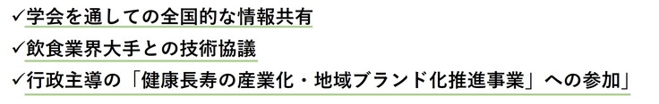 2つ目は、赤ちゃんから高齢者まで全世代に対しての『食+生活+医療のバリアフリー』です。病気やけがの予防と健康長寿を考える上で、食品と生活習慣は非常に大きな役割を担っています。しかし、多くの人々はおいしいものを食べたいという気持ちから健康を疎かにしてしまいがちです。また、本当に満足度の高い食事をしているのか、物はたくさんあるのに正しい食品の選び方がわからない、作り方が分からないという悩みを抱える人も少なくありません。そのような方々に対して、理想的な食事についての知識を伝えていく「食の提案者」の役割を果たしたいと考えています。