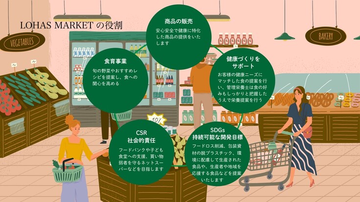 また、LOHAS CLUBのコンセプトは「体に優しく、安心安全で環境に配慮した、地域の皆様が笑顔になれる食と暮らしを豊かにする場所」となっており、医療・介護・福祉と併存して運営することは全国的にも前例が少ない取り組みですが、新たな地域活性化のモデルとして地域貢献の役割を果たしていきたいと考えています。