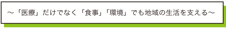 これまで病院食を自院で調理してきた経験と蓄積してきたデータを活かし、健康・予防に関する世の中のニーズを踏まえた街づくりと良質なサービス提供を目指す目標としてこの名称を選択しました。
